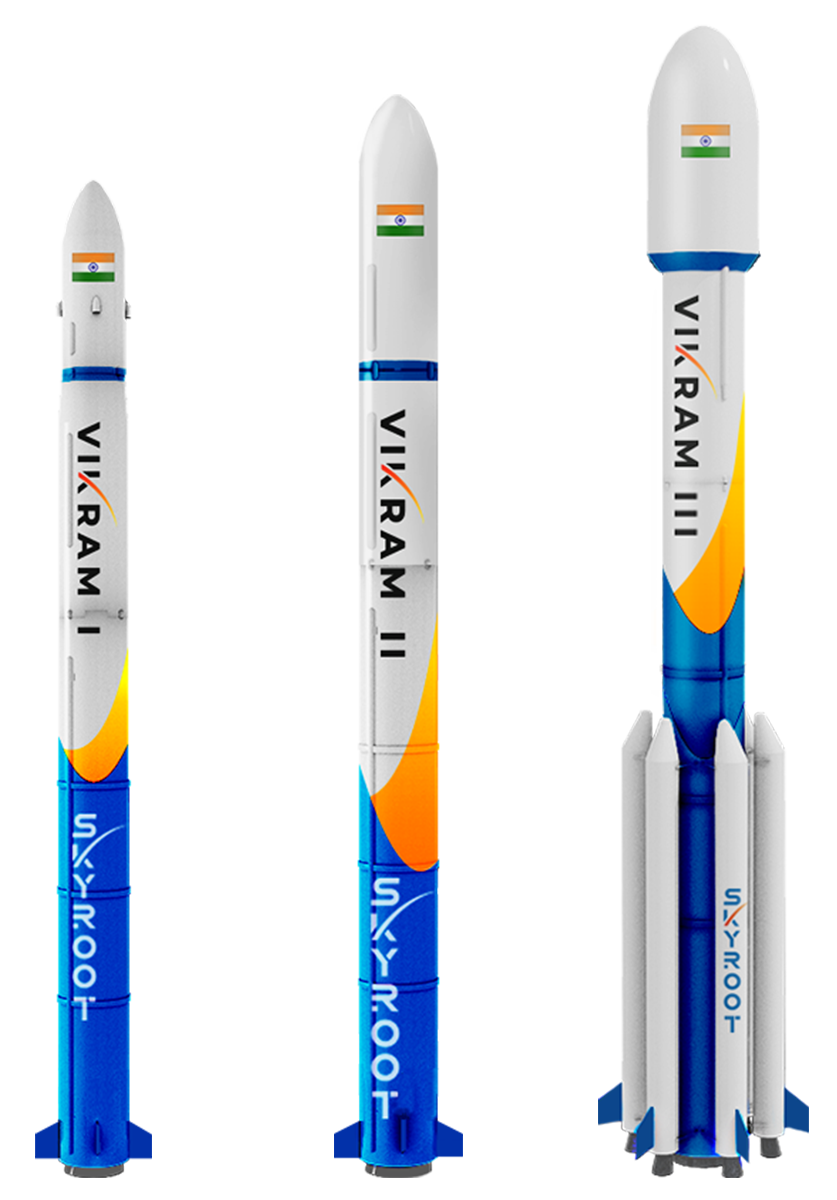 Бывшие сотрудники Индийской организации космических исследований (ISRO) и государственной Организации оборонных исследований и разработок (DRDO), несколько лет назад собрались вместе ради создания стартапа Skyroot. Он работает над разработкой серии небольших ракет Vikram, которые способны выводить на солнечно-синхронную орбиту полезную нагрузку массой от 225 до 580 кг.