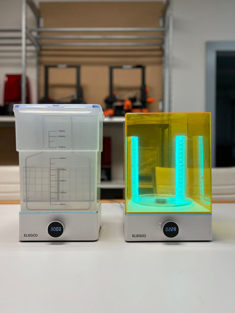 Пристрій для затвердіння абсолютно ідеальний, це було б навіть ДУЖЕ ДОБРЕ. Пристрій для миття, з іншого боку, відносно грубий і абсолютно не підходить для дуже тонких деталей. Для "нормальних" частин, однак, також дуже добре.