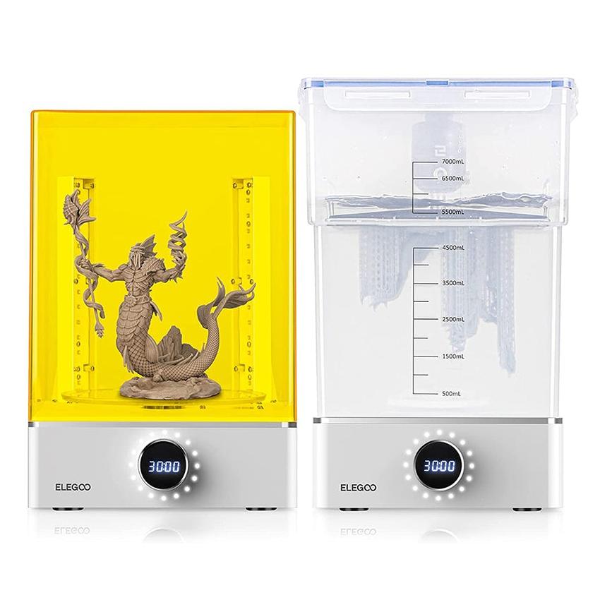 Купив комплект разом з Elegoo Mars 3. Як завжди, все прийшло дуже гарно запакованим (дві коробки). З сушаркою потрібно з’єднати дві світлові колони та закріпити кожну 5 гвинтами, гвинти та інструменти входять у комплект поставки, поворотний столик готовий. Тут також, як це часто буває, допоможе ознайомитися з посібником. Мийну станцію потрібно лише розпакувати та наповнити, і вона готова до роботи. Кошик для миття, що входить у комплект, можна легко поставити та вийняти, не турбуючись про те, що бризки можуть потрапити вам у очі. Обидва пристрої живляться електрикою лише від одного джерела живлення одночасно, що мені особисто дуже подобається. Коли друк закінчено, мені просто потрібно вийняти друковану форму з принтера, повісити її в мийній станції та дати почистити. Ізопропанол повертають по черзі вліво і вправо. Оскільки я дозволив відбитку випаруватися, відпустив його, і можна почати наступний відбиток, тому що пластину було очищено одночасно. Просто чудово. Потім надруковане приходить у сушильну машину, ви повинні впоратися з часом і спробувати щось, що для мене швидко пішло. Тиск підсвічується 2 колонами світла і знизу, завдяки чому все обертається по колу. Обидва пристрої прості у використанні, і використовувати їх - це дитяча гра. Разом із Mars 3 у мене є найкраще рішення для мого хобі. У мене є ще одне бажання. Я хотів би мати можливість купувати ізопропанол у каністрах по 5 л тут. Це полегшує заповнення мийної станції, а також утилізацію ізопропанолу, оскільки вдома є відповідний контейнер.
