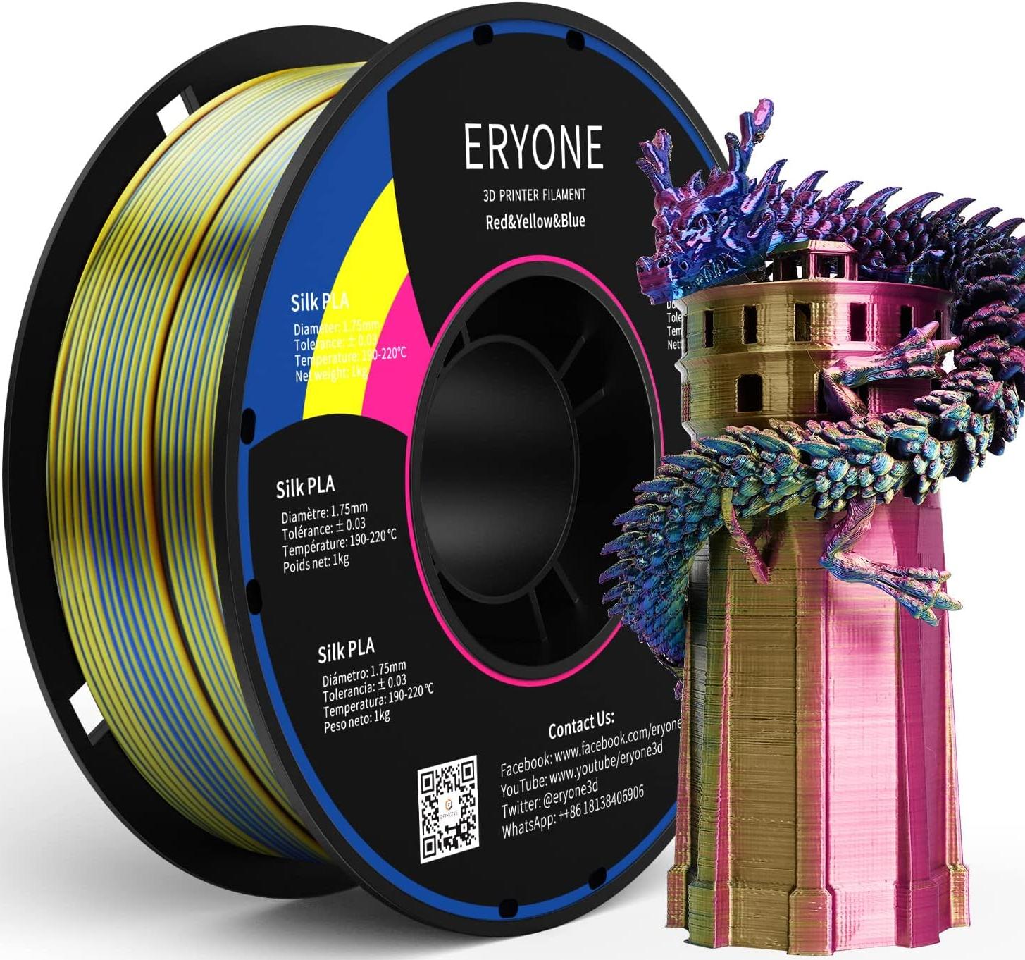 ERYONE Silk Tri-Color PLA, Red & Yellow & Blue