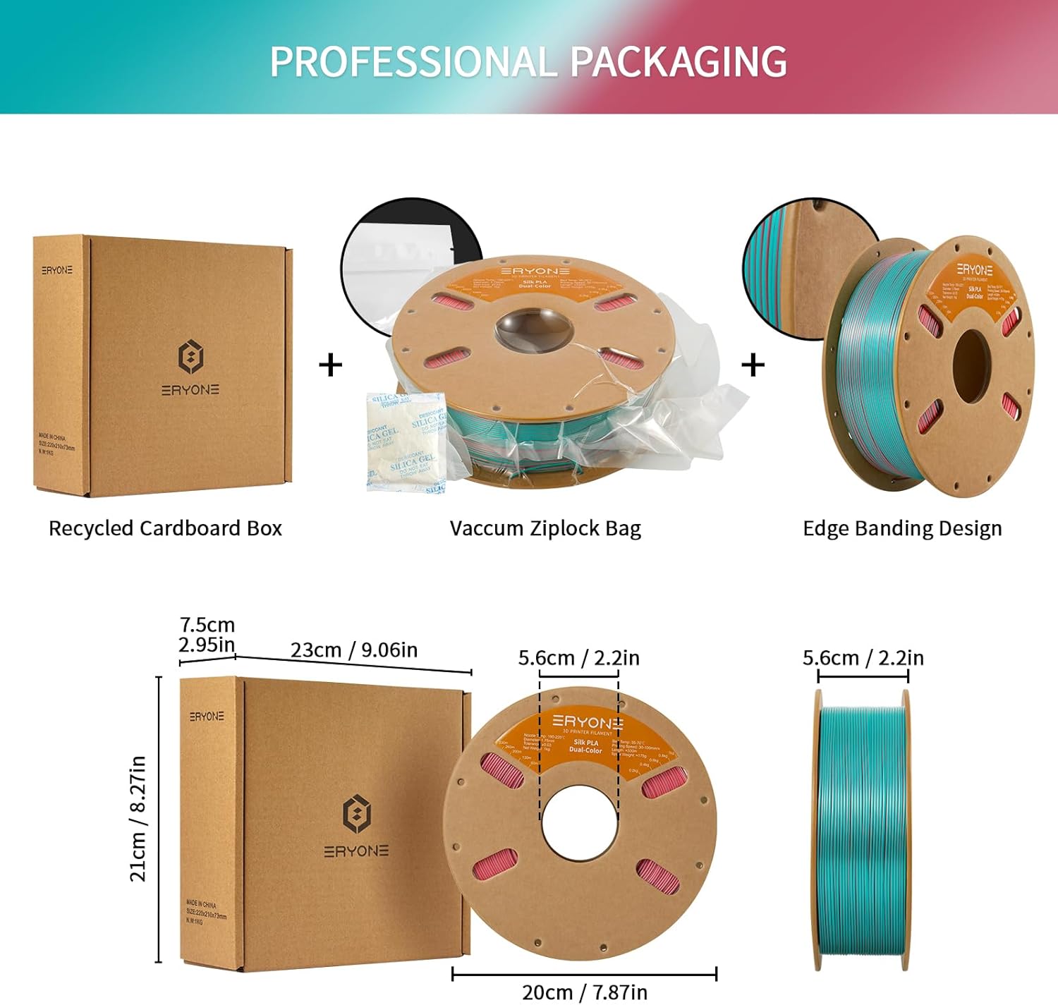 ERYONE Silk Dual-Color PLA, Teal & Orange Red