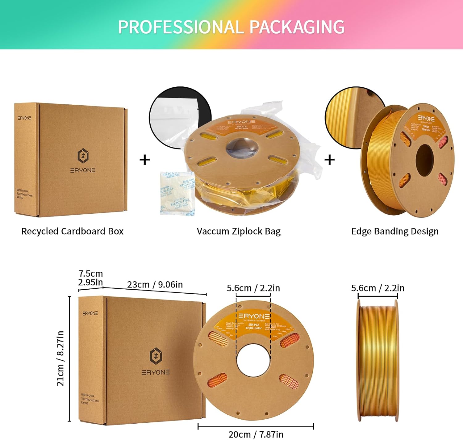 ERYONE Silk Tri-Color PLA, Jewel Green & Orange Red & Gold