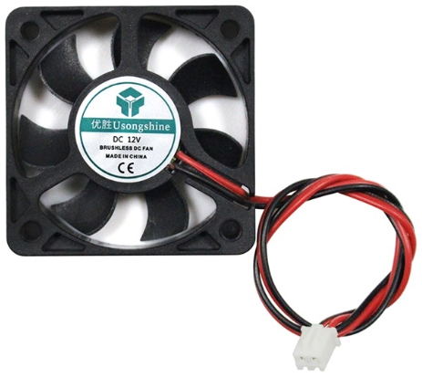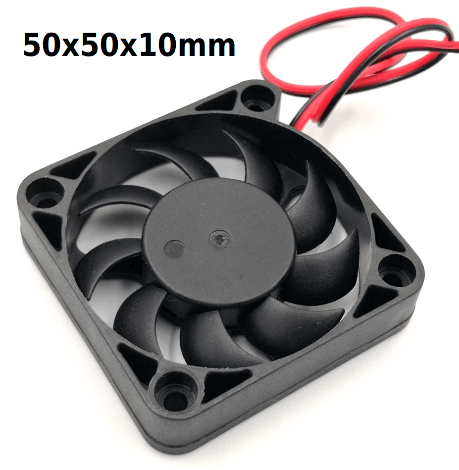 The 50x50x10 coolers have two wires for connection, colored red and black. The red wire is “+” and the black wire is “-”. When connecting the fan, ensure proper polarity; otherwise, the cooler may immediately fail.