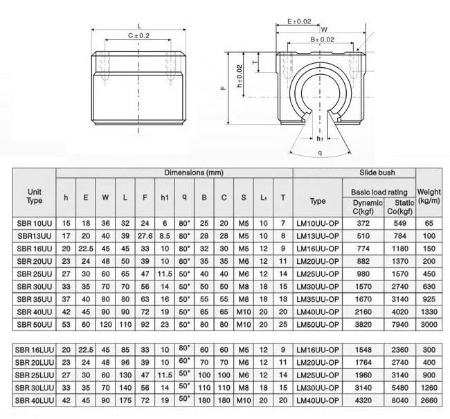 Linear bearing SBR25LUU extended