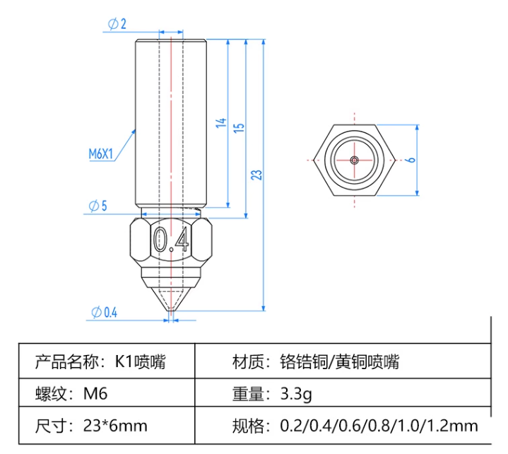 Hardened nozzle 0.4mm for K1/K1 Max