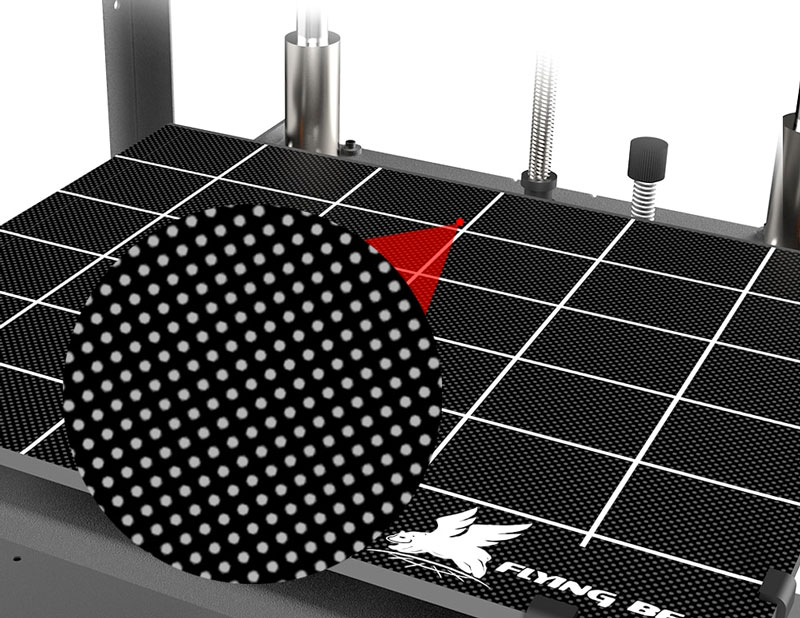 Стеклянная платформа печати, с функцией подогрева, оборудована специальным адгезивным покрытием. Она быстро нагревается и охлаждается, устойчива к различным температурным режимам печати, имеет большой срок службы и обеспечивает хорошее прилипание первого слоя, и в то же время легкое снятие модели с платформы;
