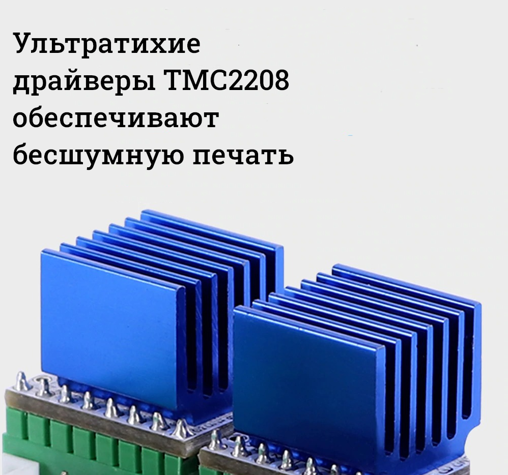 Ремень синхронизации с закрытым контуром, гарантирует хорошую синхронность, а конструкция по осям X/Y, которая выполнена из алюминиевого профиля с установленными модернизированными 12 мм направляющими оси Z – в совокупности создают повышенное качество печати;