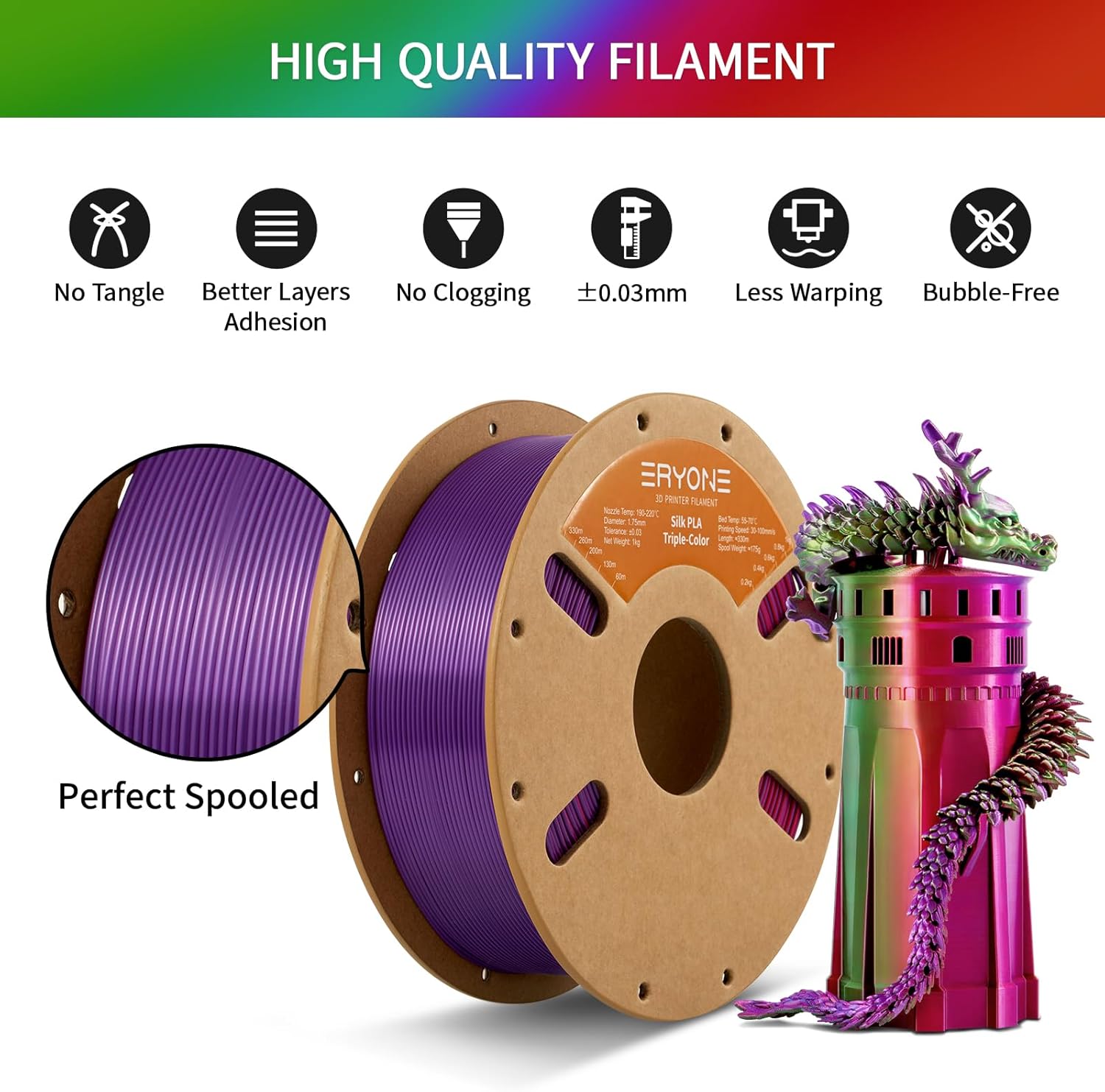 Филамент/пластик ERYONE Silk Tri-Color PLA, Red & Purple & Green