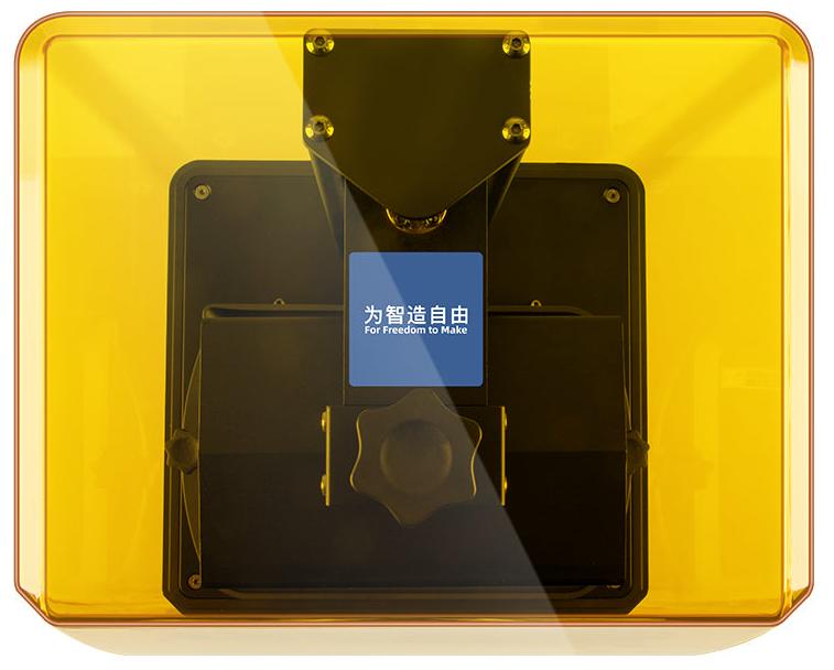 Конструкция и внешний вид принтера стандартные, как для линейки Photon нового поколения. В основании принтера находятся все электронные составляющие, включая порты, ЖК-матрицу экрана экспонирования, сам экран и сенсорный дисплей управления на передней панели. Сзади же подключается механизм для долива полимера в Vat-контейнер или ванночку для смолы. Сверху на экран устанавливается цельнометаллическая ванночка для смолы, с, установленной заранее, FEP-пленкой, защищающий блок УФ-засветки. Vat-контейнер крепится на двух болтах, внутри резервуара нанесена разметка, для контроля над уровнем смолы. На двойной рельсовой направляющей, которая является осью Z, располагается платформа печати, адгезивная поверхность которой, предварительно обработана путем лазерной гравировки для лучшего сцепления первых слоев модели с платформой. Она крепится к кронштейну с помощью 4 болтов и одного верхнего регулятора. Калибровка платформы печати осуществляется вручную. Сверху надевается полупрозрачный защитный акриловый колпак желтого цвета, который, как заявлено производителем, блокирует 99,95% УФ-излучения, и обеспечивает защиту полимера от затвердевания, при попадании солнечных лучей, а также бережет зрения пользователя, позволяя наблюдать за всеми процессами печати.