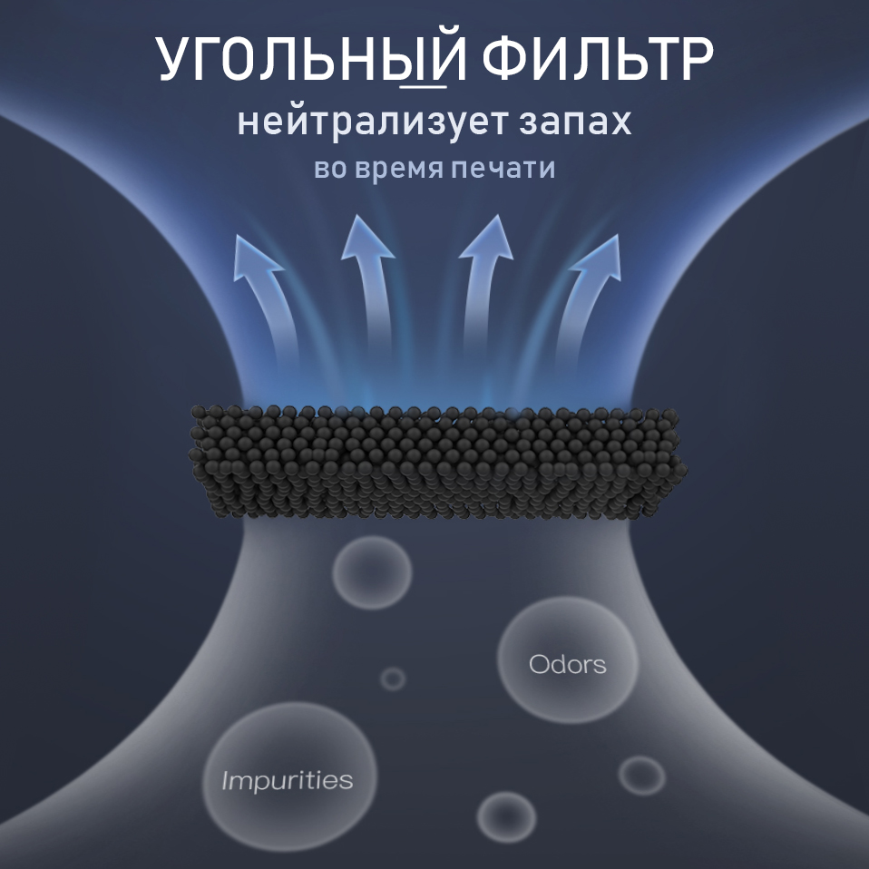 Для комфортного расположения принтера в небольшой мастерской (компания 3DTrade настоятельно не рекомендует размещать принтер в жилых помещениях или помещениях со слабой вентиляцией), Creality снабдили модель LD-002H специальной системой фильтрации воздуха, которая снижает и нейтрализует вредоносные испарения полимеров, применяемых во время печати. В данном случае используется угольная фильтрация, которая способна облегчить работу с 3D принтером.