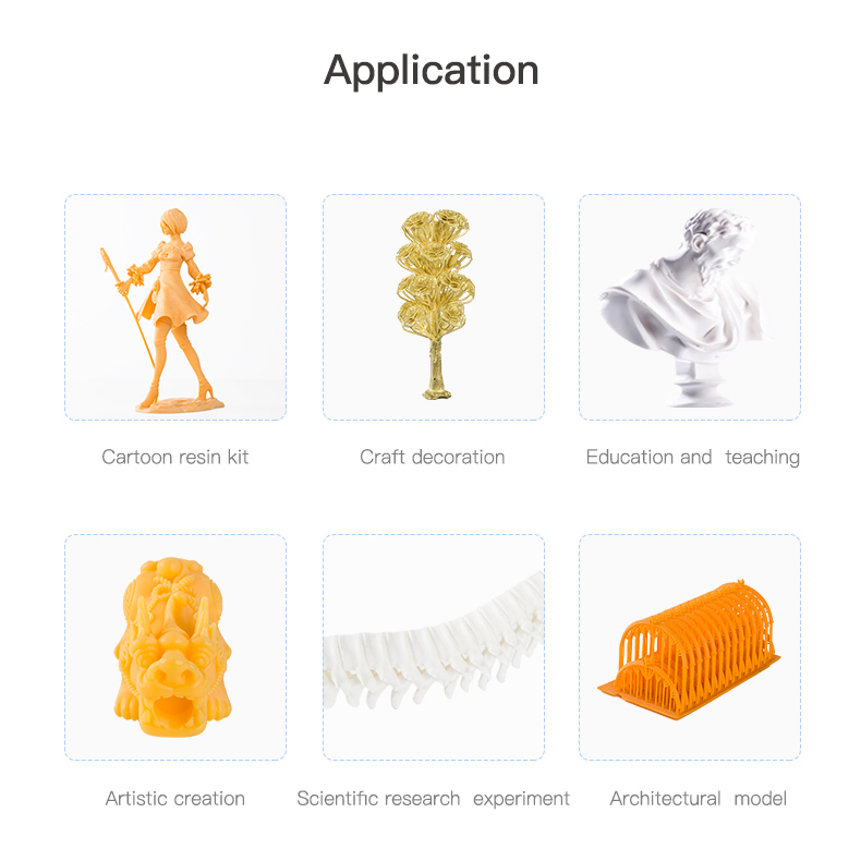 Готовые изделия из фотополимера Creality LCD Standard Rigid Resin Plus имеют достаточно высокий процент жесткости при минимальной упругости. Это позволяет использовать смолу для создания подвижных моделей, прототипов ювелирных украшений, дизайнерских украшений предметов и интерьера, создания прототипов механизмов и зданий. Готовые изделия из LCD Standard Rigid Resin Plus имеют гладкую поверхность и высокий показатель детализации. Смола достаточно нетребовательна к настройкам и технологии печати, поэтому ее рекомендуют использовать в образовательных целях и тем, кто только начинает заниматься фотополимерной 3D-печатью.