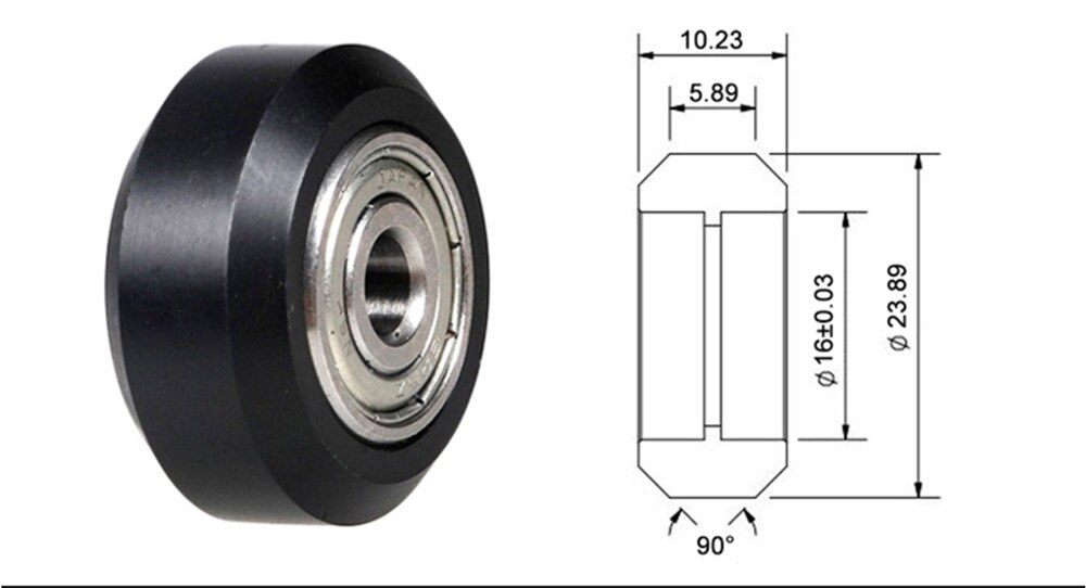Колесо для напрямних 3D принтера, V-образне чорне, Two Trees