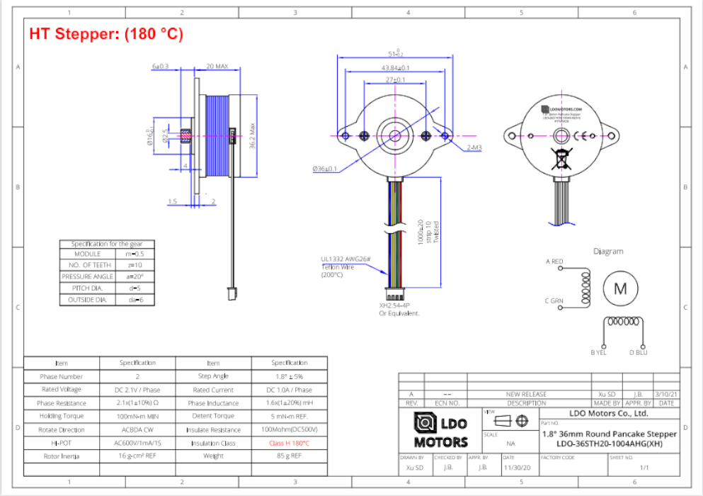 Кроковий двигун LDO-36STH20-1004AHG (XH) з кроком 1.8°, фіксуючим моментом 5 мНм і моментом утримання 100 мНм, являє собою універсальний двигун, який має зубчасту оправку, що робить його ідеальним рішенням для екструдерів (наприклад, Galileo, або Orbiter), 3D-принтерів (наприклад, Voron 0 / 1.8 / 2.4) та верстатів з ЧПУ. Використовуйте з мікрокроковим драйвером для зниження вібрації та досягнення більш високої крокової роздільної здатності.